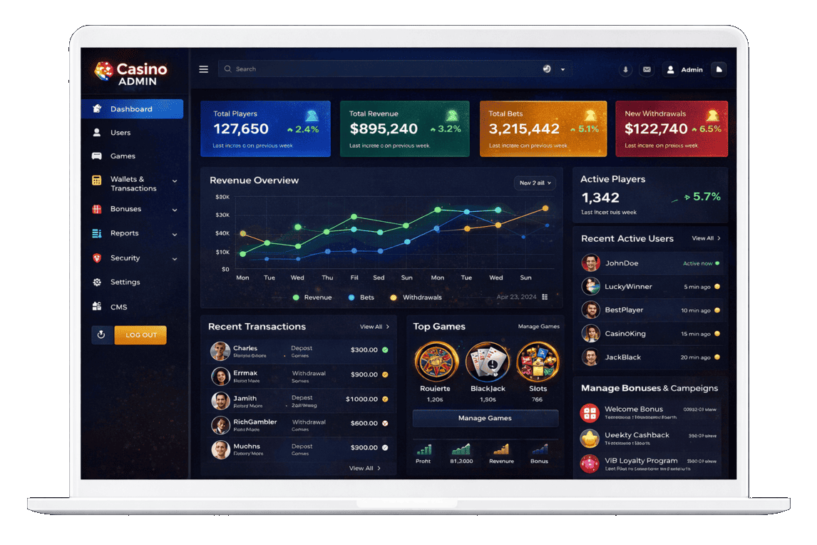 Our advanced casino software comes with a powerful admin panel that allows seamless management, control, and monitoring of the entire platform.